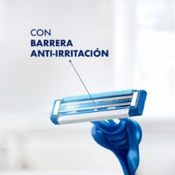 Maquina desechable, con barrera anti-irritación. Empuja la piel para protegerla de las hojas y minimiza e contacto de las hojas con la piel sensible.