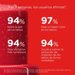 Ayuda a reparar la piel de los labios dañados y alivia de forma inmediata la sensación de irritación.