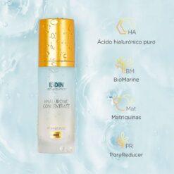 Hyaluronic Concentrate es un sérum facial con ácido hialurónico puro de bajo y medio peso molecular y textura aqua-gel que proporciona una hidratación superficial y profunda. Ayuda a rellenar la piel y prevenir las primeras arrugas y líneas de expresión, disminuye la apariencia de los poros y aporta luminosidad, para una piel radiante.