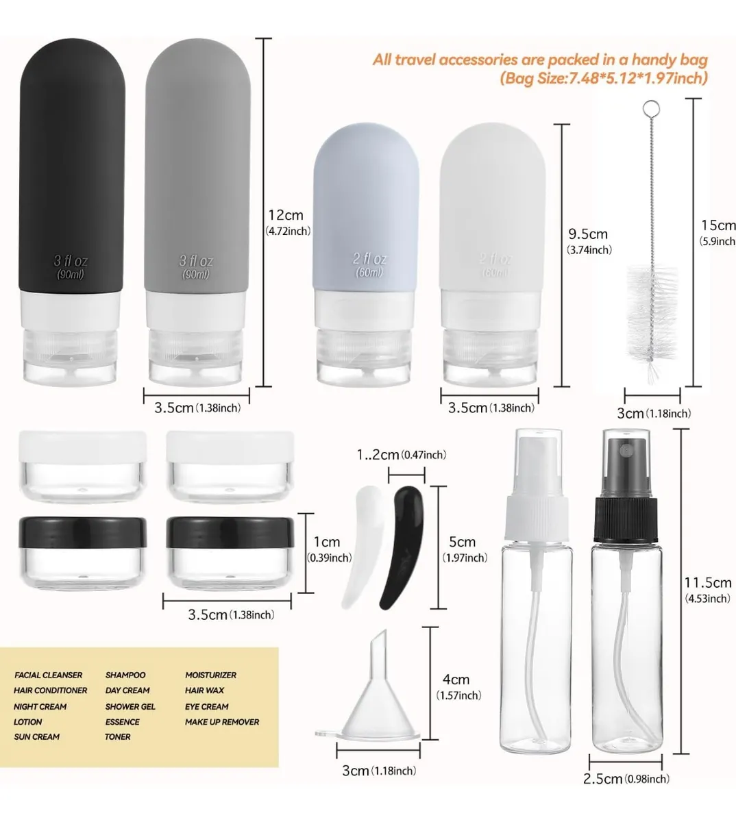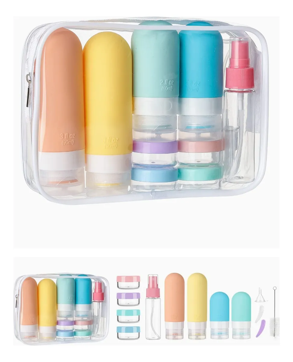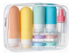 Neceser de viaje impermeable con frascos recargables – Apto cabina